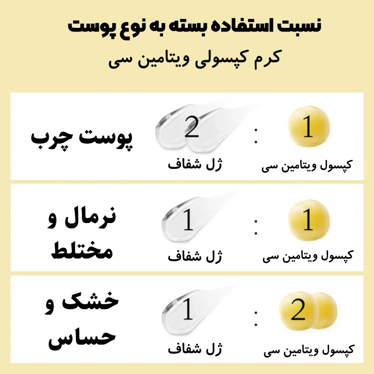 اگر پوست خشک یا کمآب دارید و به دنبال رطوبت و خاصیت کشسانی بیشتر هستید، مقدار کپسول را افزایش دهید.